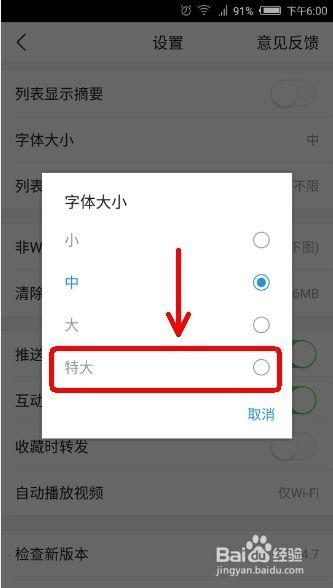 3. 在设置菜单中,找到“字体大小”选项。